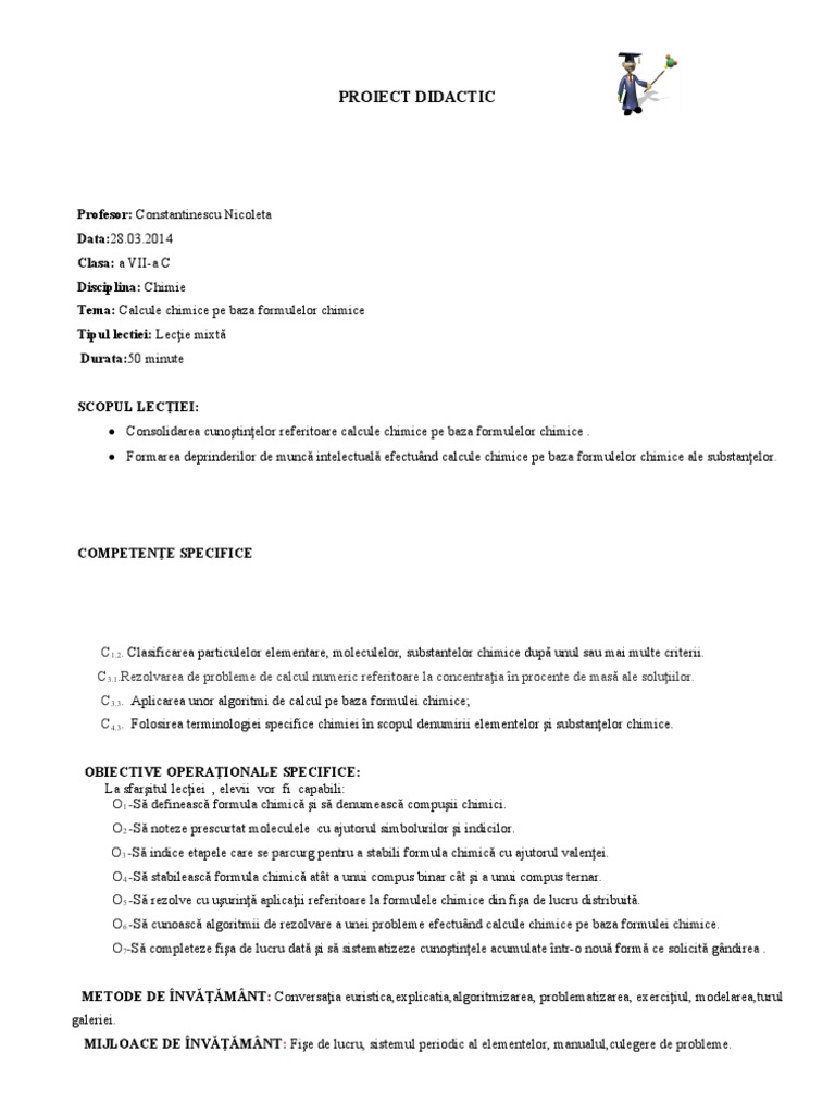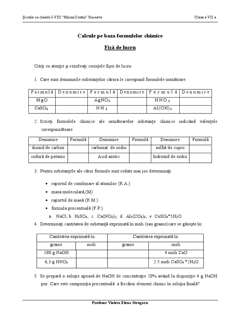 Calcule Pe Baza Formulelor Chimice Clasa A Vii A