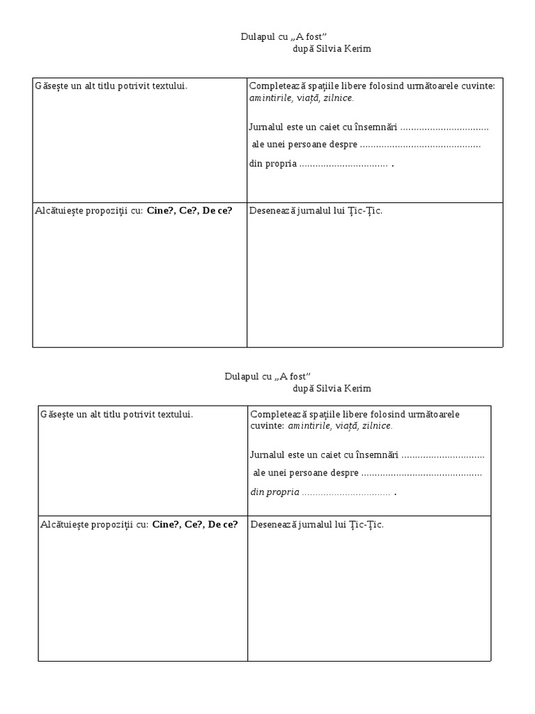 Dulapul Cu A Fost De Silvia Kerim Povestirea Brainly Ro