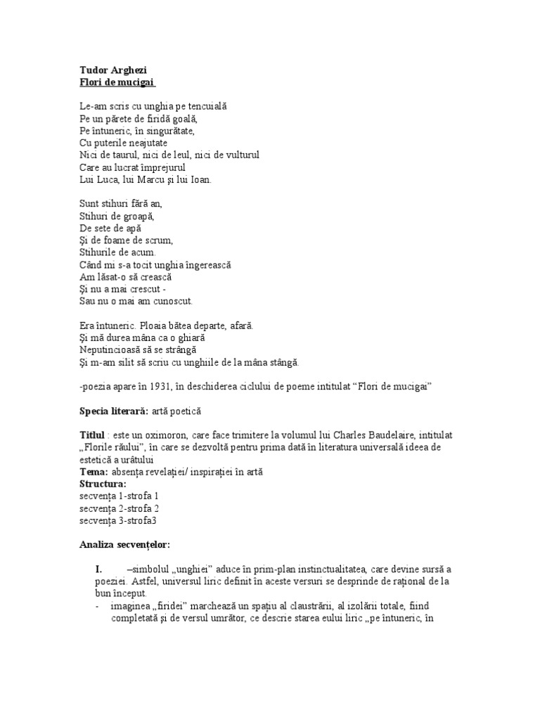 Versuri Tudor Arghezi Flori De Mucigai Docx