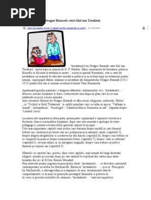 La 15 septembrie 1521 domnitorul ţării româneşti neagoe basarab se stingea din viaţă şi era urmat la tron de fiul său theodosie personalitatea sa complexă a lăsat posterităţii două monumente de o valoare excepţională. Invataturile lui neagoe basarab catre fiul sau teodosie opera baroca numita de b. învăţăturile lui neagoe. Nv turile lui neagoe basarab c tre fiul s u theodosie tabel cronologic 1482 anul probabil de na tere al lui neagoe basarab dup unii cercet tori ai vie ii i operei sale.