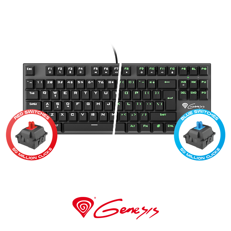 Keyboard Natec Genesis Gaming Thor 300 Tkl Mechanical Blue Switch Green Backlight